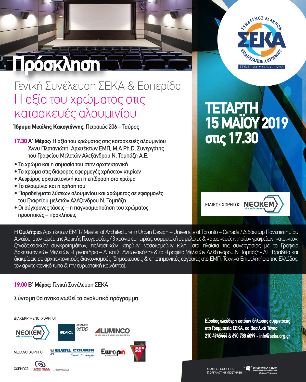 Πρόσκληση: Γενική Συνέλευση & Εσπερίδα για το Χρώμα 15/5/19 by dmtrs May 21, 2019 0 Category: Newsletters 2019